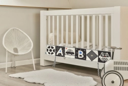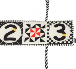 Ta izobraževalna tekstilna knjižica je odličen dodatek za otroško sobo. Deluje ne le kot knjižica, polna kontrastnih vzorcev za vizualno stimulacijo, temveč tudi kot zaščitni obrobek za posteljico.