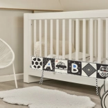 Kontrastni vzorci in izrazita grafika pritegnejo pozornost vašega otroka ter podpirajo razvoj njegovih vidnih sposobnosti.