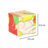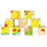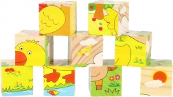 Vsaka kocka je okrašena z barvnimi ilustracijami iz kmetije, ki spodbujajo otroško domišljijo in vidno zaznavanje.