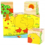 Prinesite čar kmetije v otroško sobo s tem lesenim setom sestavljank. Set vsebuje 9 barvnih kock, ki jih je mogoče uporabiti za sestavljanje 6 različnih kmečkih motivov, vključno s psi, rački, kravami, petelini, zajčki in jagnjeti. Varne in trpežne—kocke so narejene iz naravno poliranega lesa brez ostrih robov, kar zagotavlja varnost med igro.