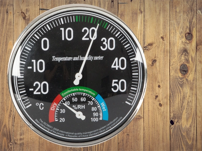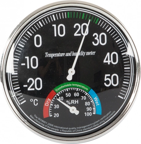 - Opremljena z dvema velikima številčnicama - temperaturna s premerom 11 cm in vlažnostna 4 cm.
