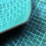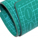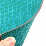 Dvostranski tisk ponuja jasno berljive merske lestvice, ravne črte, kote in pomožne krožnice za hitro in natančno poravnavo materiala. Proti zdrsna površina drži material na mestu, debelina 3 mm pa učinkovito ščiti mizo pred prerezi.