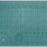 Jasno natisnjena centimetrska mreža, koti in krožnice olajšajo poravnavo materiala in natančne reze.