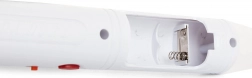 Lahka zasnova, ergonomski ročaj z nedrsečimi utori in 1× LED svetilka v ročaju olajšajo uporabo tudi ponoči. Napajanje zagotavljata 2× AA bateriji (nista priloženi), zato imate napravo vedno pri roki doma, na vikendu ali na dopustu.