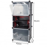 S to modularno polico lahko imate svoje čevlje in dodatke vedno pregledno urejene. Omara je sestavljena iz treh segmentov, je lahka in hkrati stabilna. Njena modularna konstrukcija omogoča enostavno montažo in prilagodljivost v razporeditvi glede na vaše potrebe. Kovinski okvirji se preprosto povežejo s pomočjo ABS povezujevnih elementov.