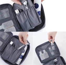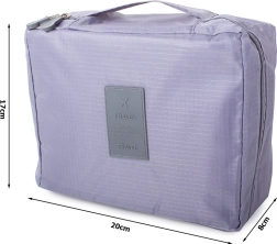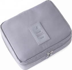 Ta sivi potovalni organizator za kozmetiko zagotavlja dovolj prostora za vse vaše potrebe. Ima eno glavno pregrado in izvlečno komoro z dvema žepoma zaprto z suho zadrževalko, kar omogoča povečanje kapacitete. Poleg tega vsebuje dva mrežasta žepa za drobnarije.