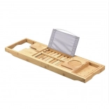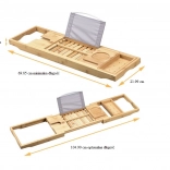Nastavljiva bambusova polička za kad z držalom za tablico in kozarcem
