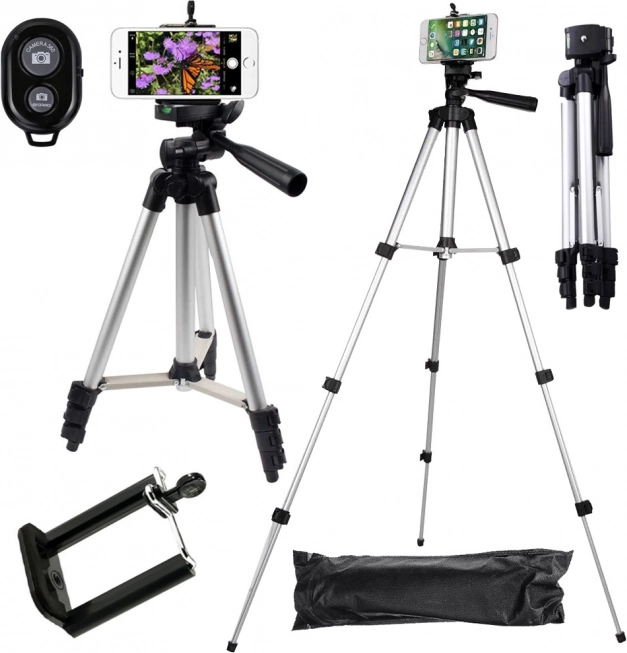 • Vsebina paketa: stativ, nosilec za telefon, Bluetooth daljinski upravljalnik, prenosna torbica, originalna embalaža