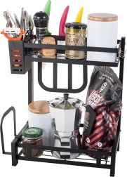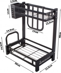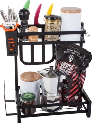 Organizator je opremljen s 4 kavlji za obešanje krp in kuhinjskih pripomočkov, kot so žlice za juho in tolkači. Dizajn zagotavlja funkcionalnost ter hkrati služi kot okras vaše kuhinje.