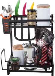 Kuhinjski organizator je nepogrešljiv del vsake kuhinje, z praktičnostjo in urejenostjo sprejme številne različne predmete. Opremljen je z visečim organizatorjem za pribor, posebnim organizatorjem za velike kuhinjske nože in polico za deske za rezanje. Zaradi modernega dizajna v loft slogu se poda v vsak interier.