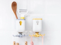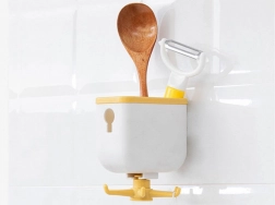 Enostavna namestitev: obešalnik je opremljen z montažnim lepilom, ki zagotavlja varno pritrditev na katerokoli gladko površino. Uporaba je primerna ne le v kuhinji, kjer lahko obesite različne kuhinjske pripomočke, temveč tudi v kopalnici za gobice in brisače.