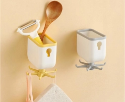 Univerzalni kuhinjski obešalnik z vrtljivim ročajem za enostavno in praktično obešanje kuhinjskih pripomočkov. Idealen za organizacijo kuhinje ali kopalnice.