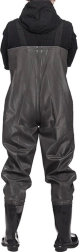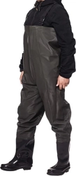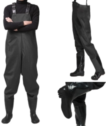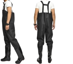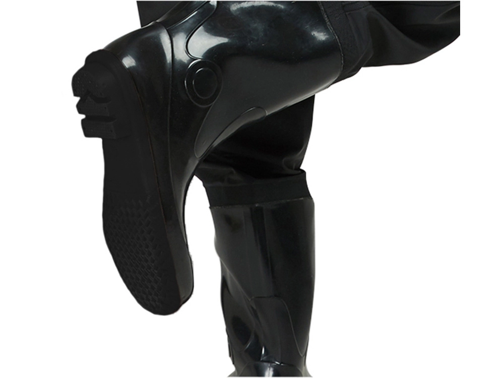 Te hlače za brodenje so idealne za ribiče in vse, ki delajo v vlažnem okolju. Kakovosten PVC material je vodoodporen, enostaven za vzdrževanje in ščiti pred premočenostjo tudi pri daljšem zadrževanju v vodi. Protizdrsni podplat povečuje zanesljivost koraka na kamnih, blatu in drugih spolzkih površinah.