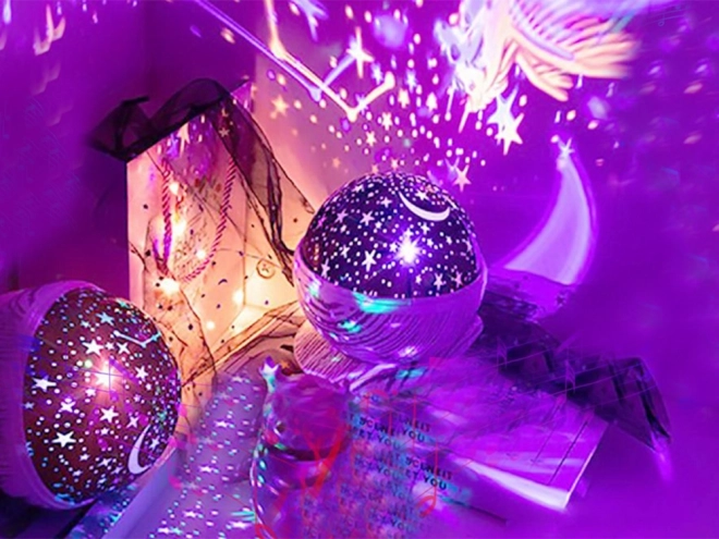 Vrteči se projektor zvezdnega neba in lune – nočna lučka z USB