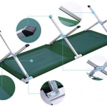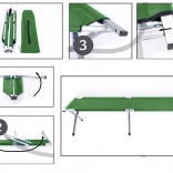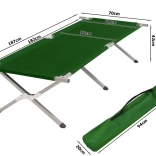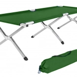 Uživajte v udobju tudi na poti. Ta zelena zložljiva taborniška postelja združuje stabilen kovinski okvir z vzdržljivo poliestrsko prevleko, ki je prijetna na dotik in enostavna za čiščenje. Zaradi premišljene X-konstrukcije je ležalnik čvrst in zanesljiv, hkrati pa ohranja nizko težo in odlično zložljivost.